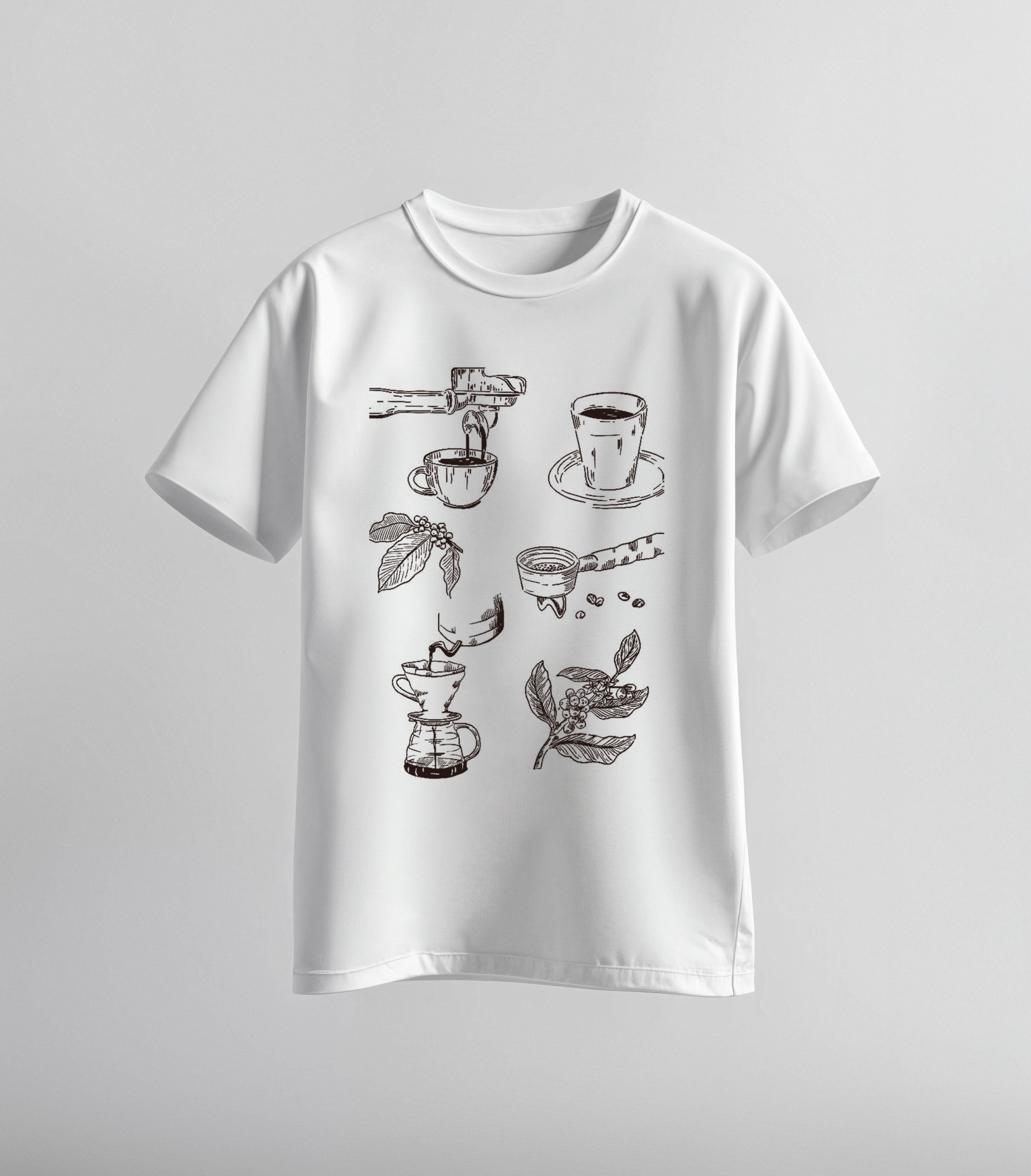 confeccionado con un algodón de gramaje medio y tacto suave para ofrecer la combinación perfecta entre frescura y una estructura relajada. Su estampado de estilo boceto, que rinde homenaje a los diversos métodos de extracción del café, añade un toque de cultura barista a una prenda esencial pensada para el uso diario.