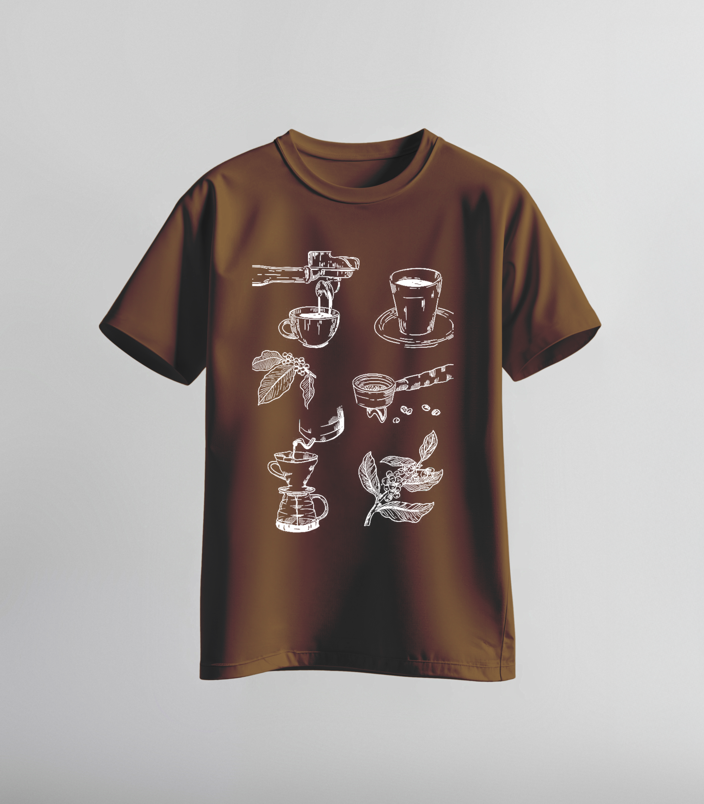 confeccionado con un algodón de gramaje medio y tacto suave para ofrecer la combinación perfecta entre frescura y una estructura relajada. Su estampado de estilo boceto, que rinde homenaje a los diversos métodos de extracción del café, añade un toque de cultura barista a una prenda esencial pensada para el uso diario.